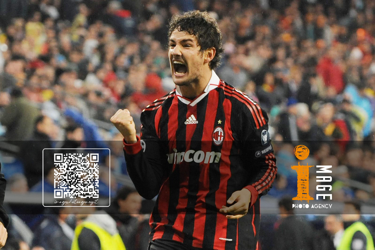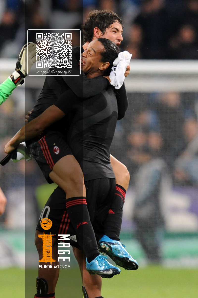 db Madrid (Spagna) 21/10/2009 - Champions League / Real Madrid-Milan / foto Daniele Buffa/Image Sport nella foto: esultanza a fine gara Alexandre Pato-Massimo Ambrosini-Nelson Dida
