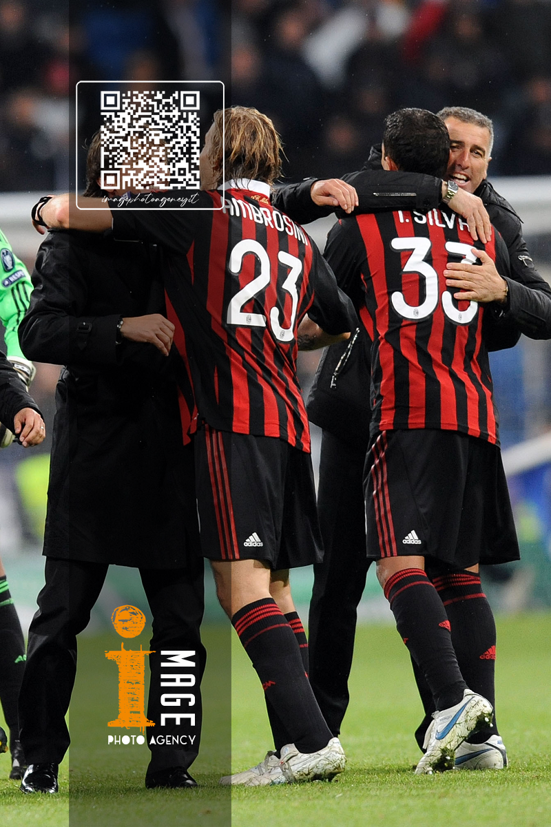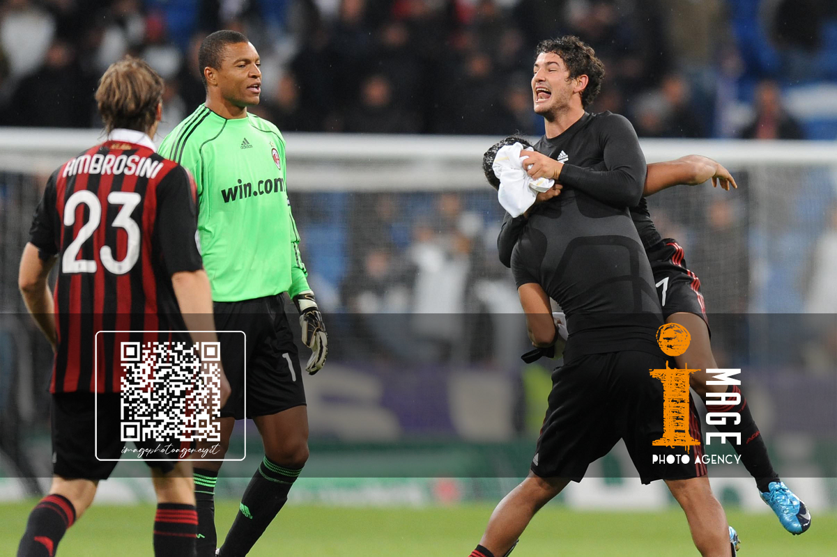 esultanza a fine gara Alexandre Pato-Massimo Ambrosini-Nelson Dida