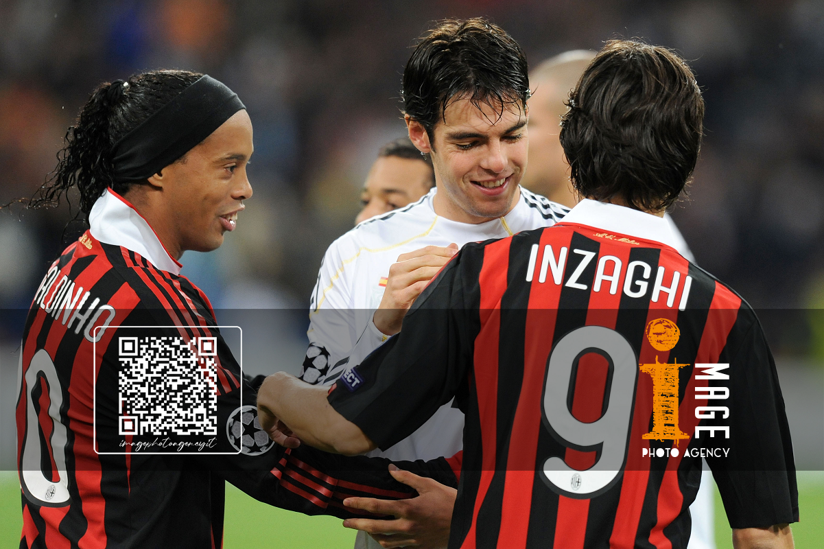 db Madrid (Spagna) 21/10/2009 - Champions League / Real Madrid-Milan / foto Daniele Buffa/Image Sport nella foto: Ricardo Kaka'-Filippo Inzaghi-Ronaldinho