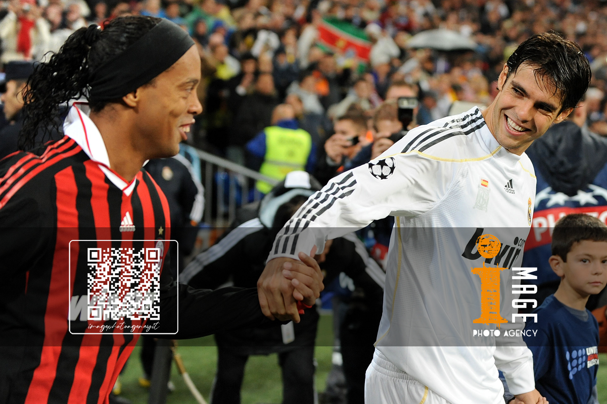 db Madrid (Spagna) 21/10/2009 - Champions League / Real Madrid-Milan / foto Daniele Buffa/Image Sport nella foto: esultanza a fine gara Ronaldinho-Alexandre Pato