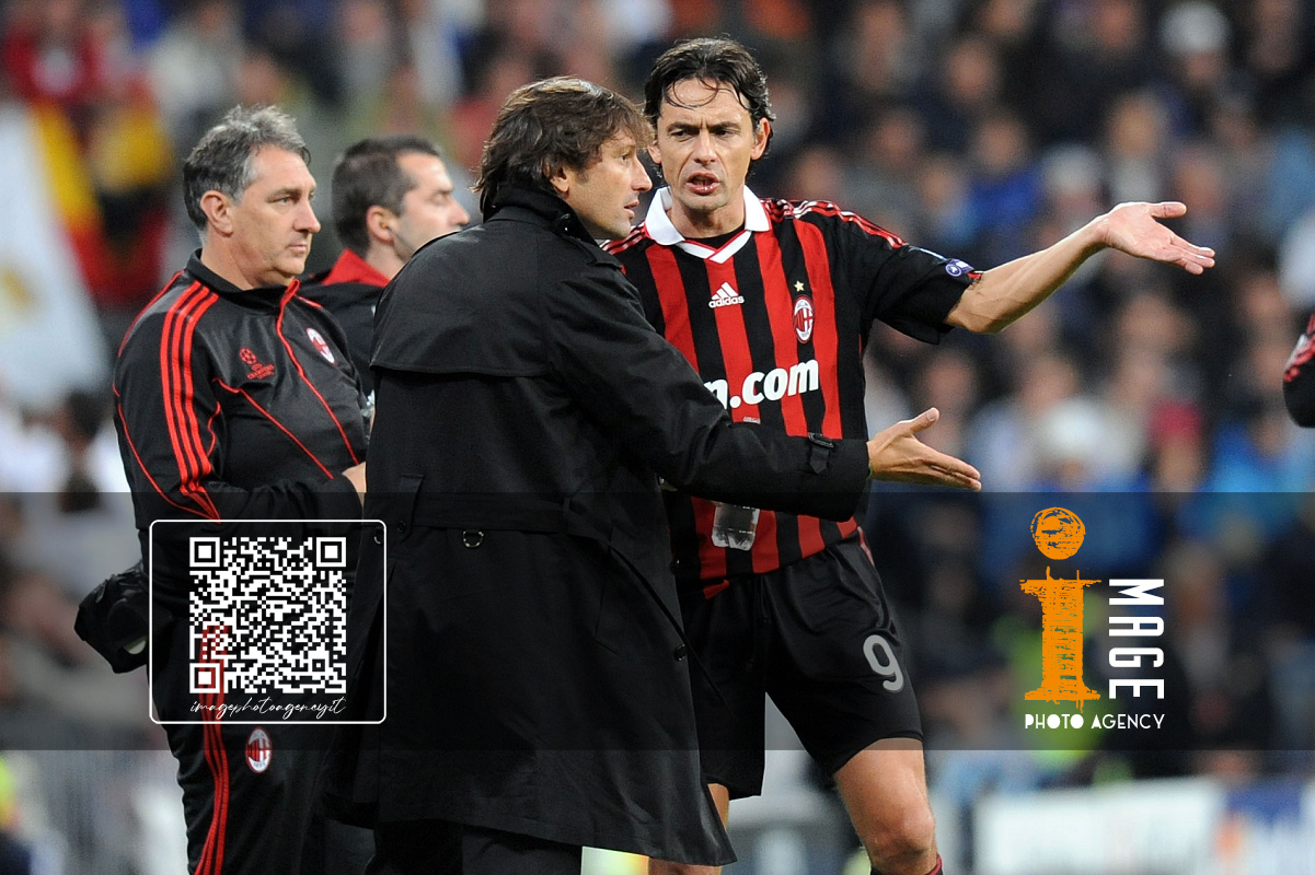 db Madrid (Spagna) 21/10/2009 - Champions League / Real Madrid-Milan / foto Daniele Buffa/Image Sport nella foto: Leonardo-Massimo Ambrosini-Thiago Silva-Mauro Tassotti