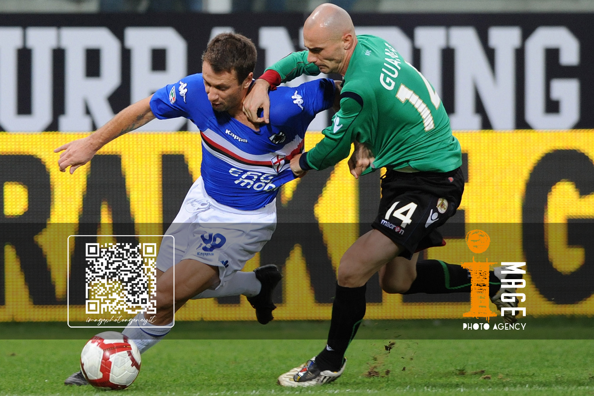 Ga Genova 24/10/2009 - campionato di calcio serie A / Sampdoria-Bologna / foto Gianluigi Arcaini/Image Sport nella foto: Antonio Cassano-Franco Colomba