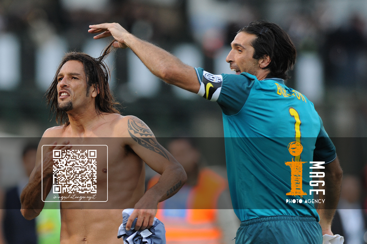 Ga Siena 25/10/2009 - campionato di calcio serie A / Siena-Juventus / foto Gianluigi Arcaini/Image Sport nella foto: Giorgio Chiellini-Gianluigi Buffon