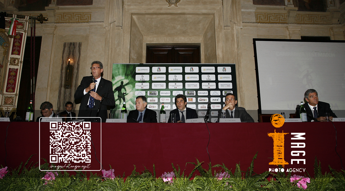 Gc Milano 05/11/2009 - presentazione Test Match 2009 Rugby tra Italia, Nuova Zelanda, Sudafrica e Samoa / foto Giuseppe Celeste/Image Sport nella foto: Corradi-Dondi-Catano-Rizzi-Nick Mallett