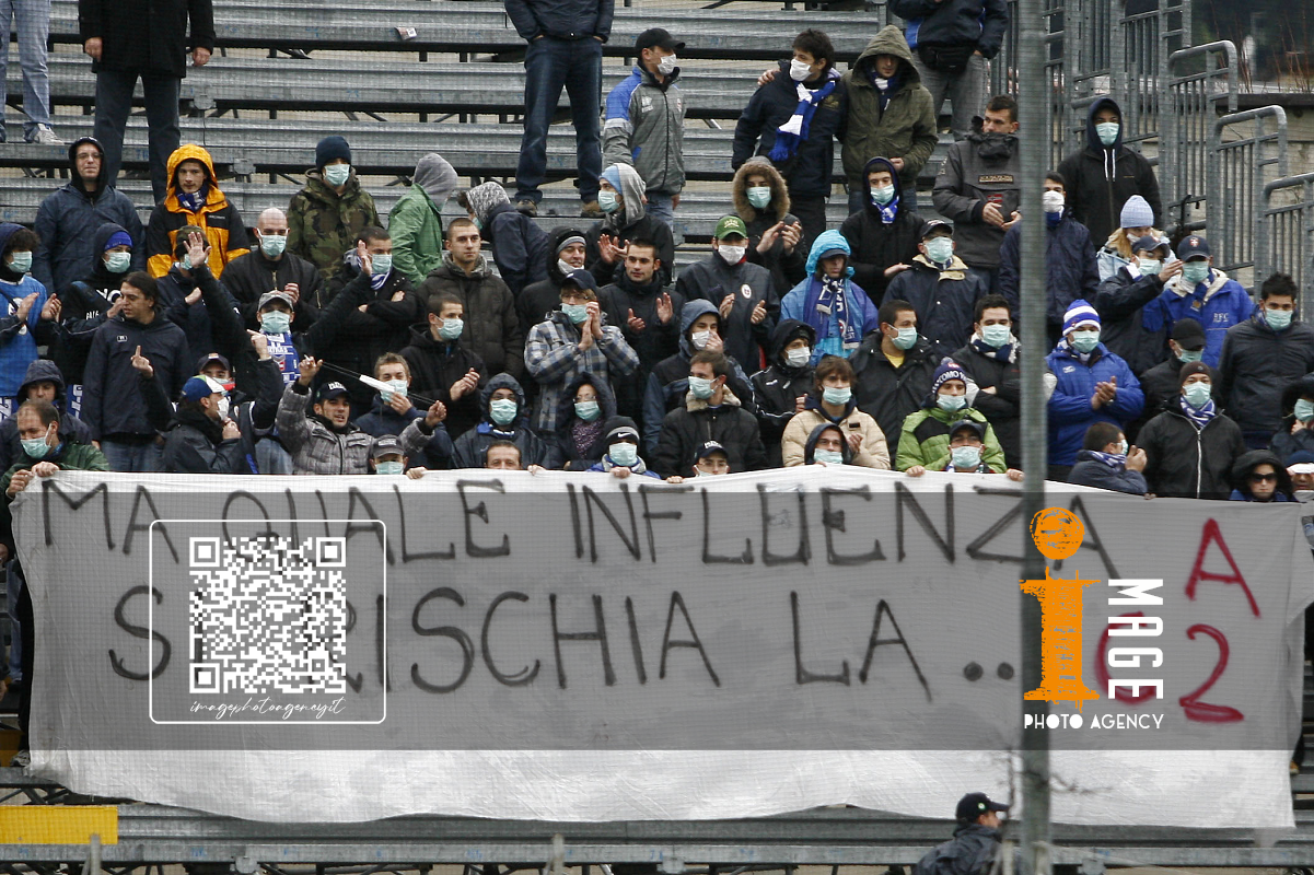 Gc Como 08/11/2009 - campionato di calcio Lega Pro / Como-Benevento / foto Giuseppe Celeste/Image Sport nella foto: striscione contestazione tifosi Como con mascherini per influenza A