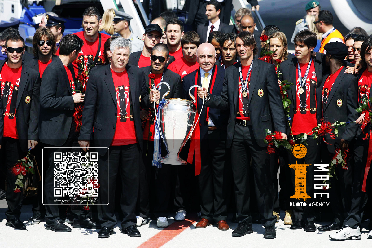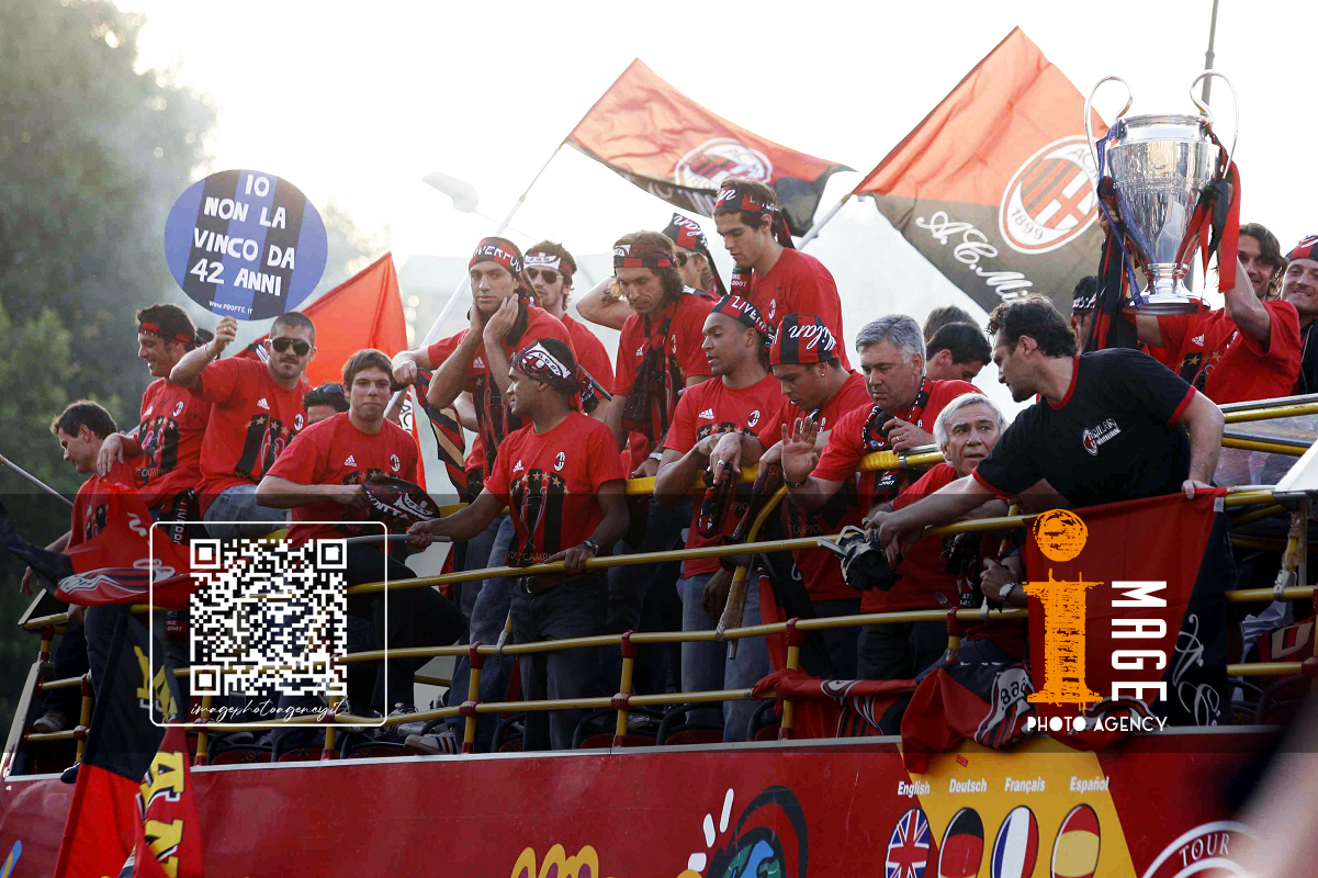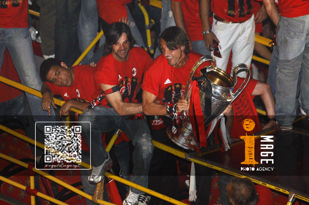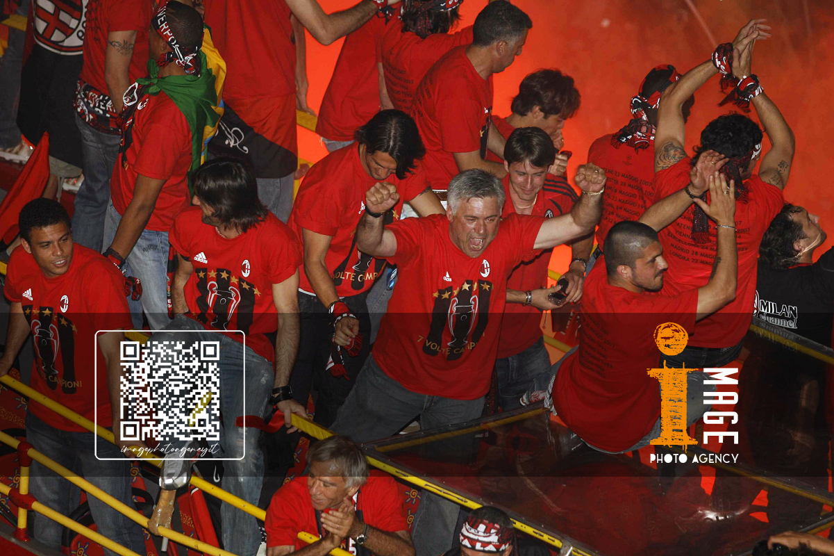 Db Milano 24/05/2007 - festa Milan vittoria Champions League / foto Daniele Buffa/Image Sport nella foto: Carlo Ancelotti-Paolo Maldini-Adriano Galliani