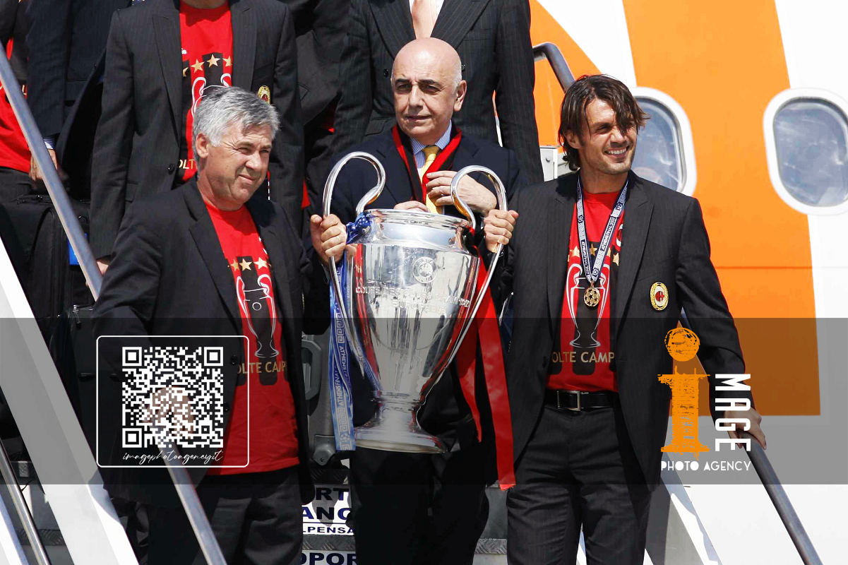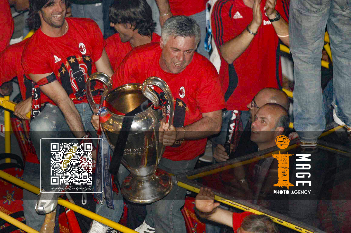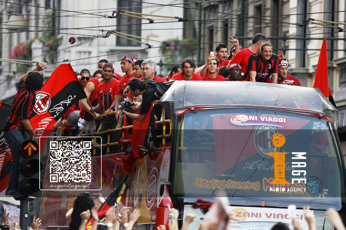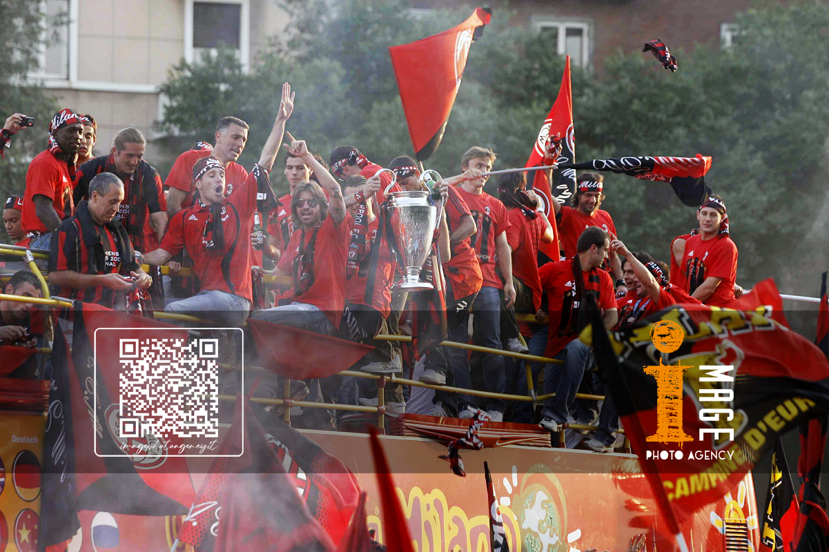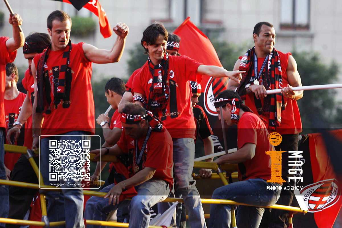 Db Milano 24/05/2007 - festa Milan vittoria Champions League / foto Daniele Buffa/Image Sport nella foto: Carlo Ancelotti-Paolo Maldini-Adriano Galliani