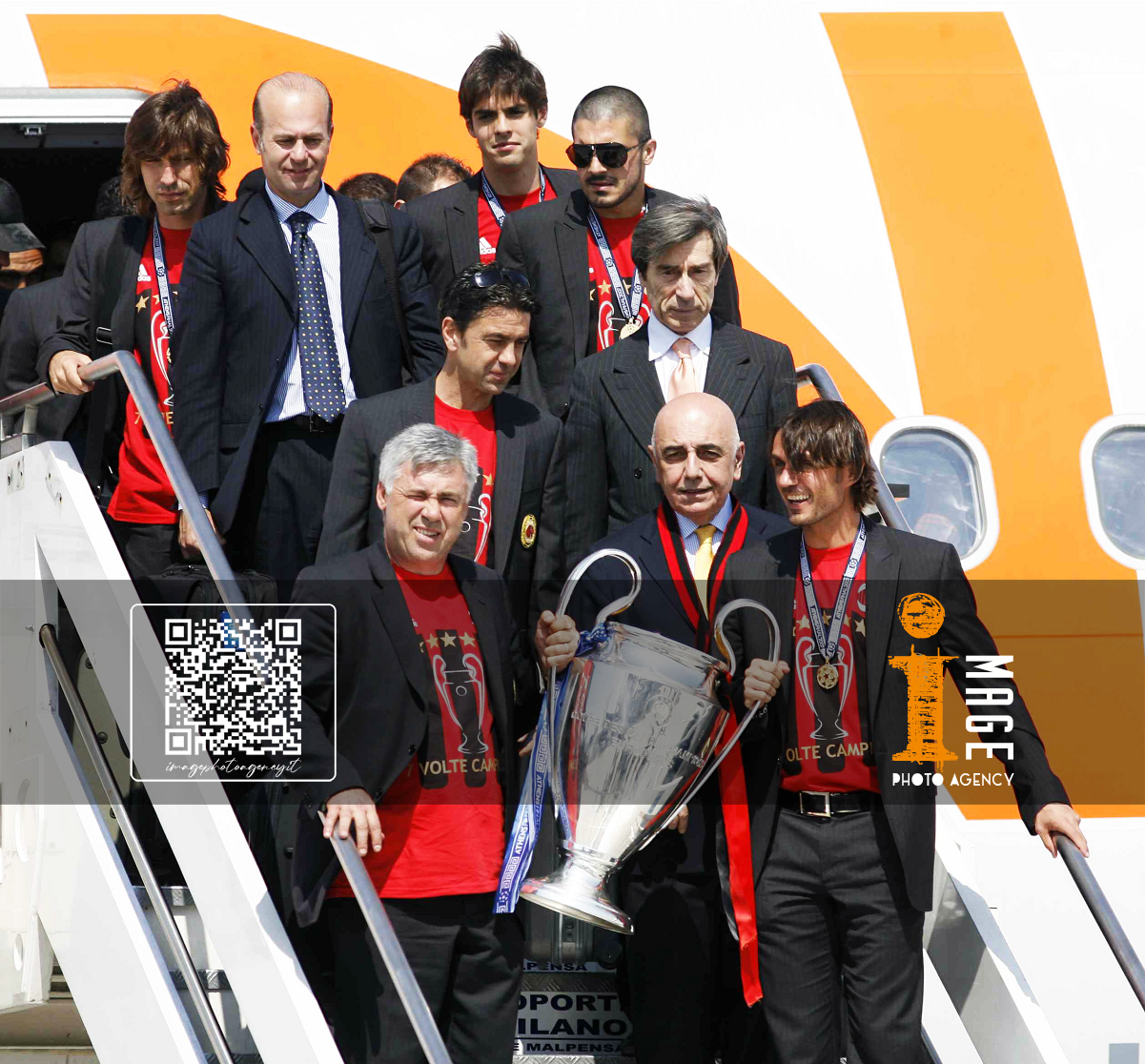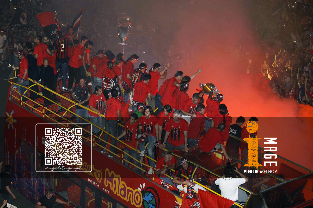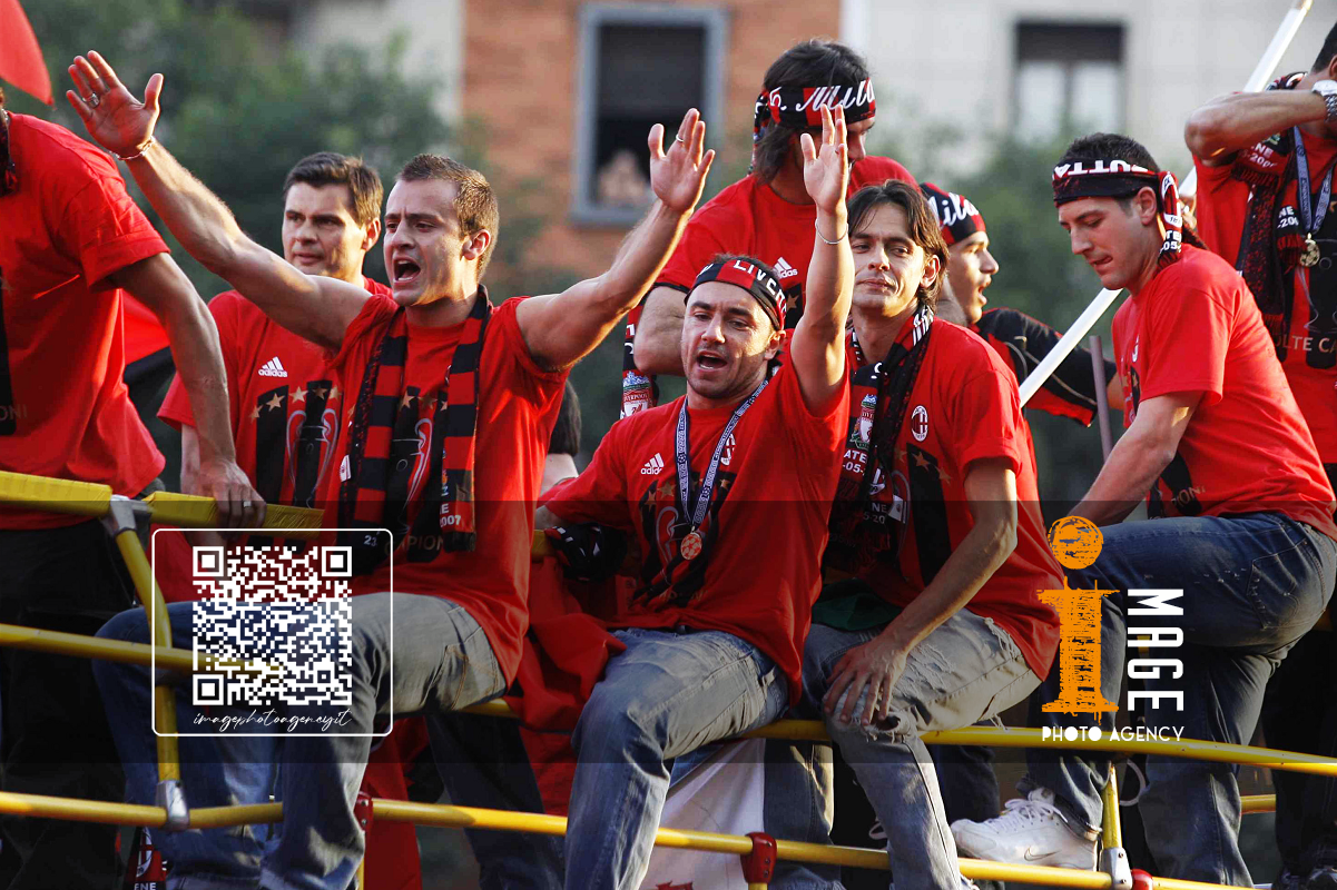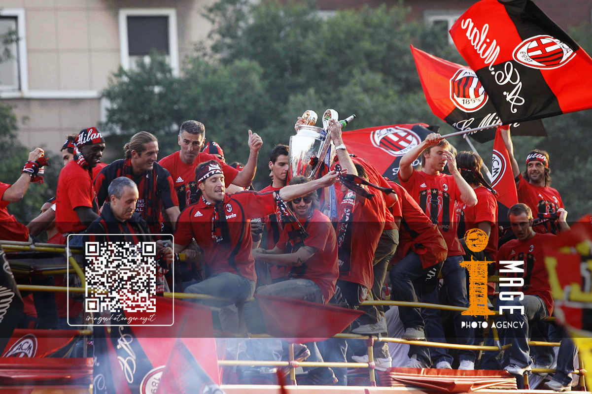 Db Milano 24/05/2007 - festa Milan vittoria Champions League / foto Daniele Buffa/Image Sport nella foto: Carlo Ancelotti-Paolo Maldini-Adriano Galliani