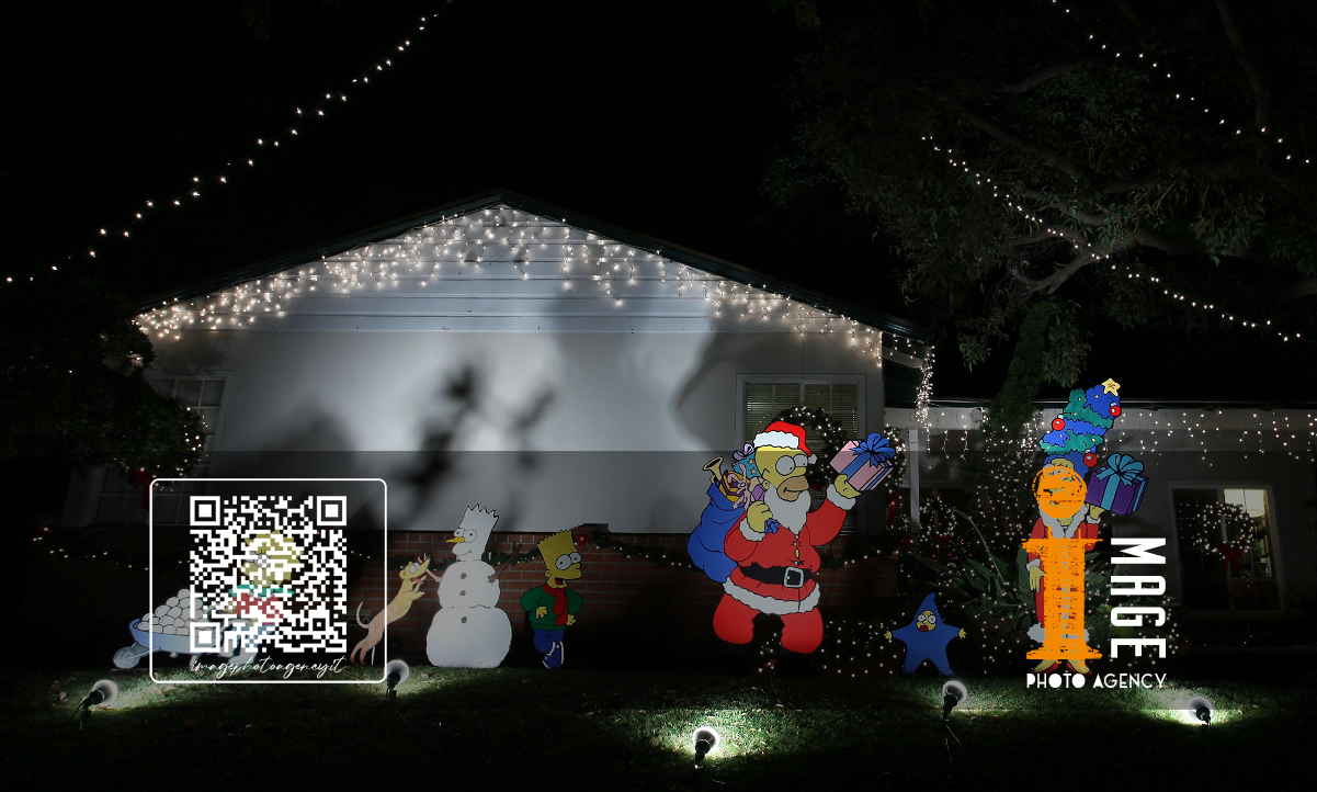 giardino di una casa Americana illuminata per il Santo Natale con i Simpson ONLY ITALY