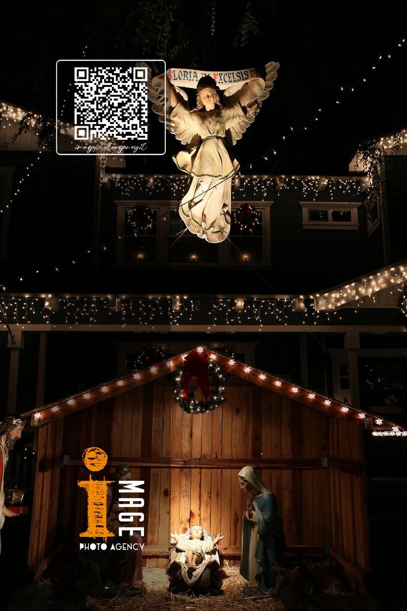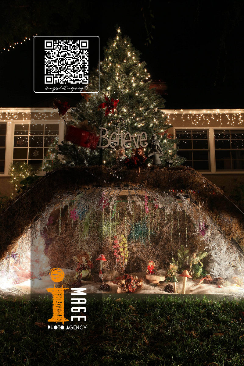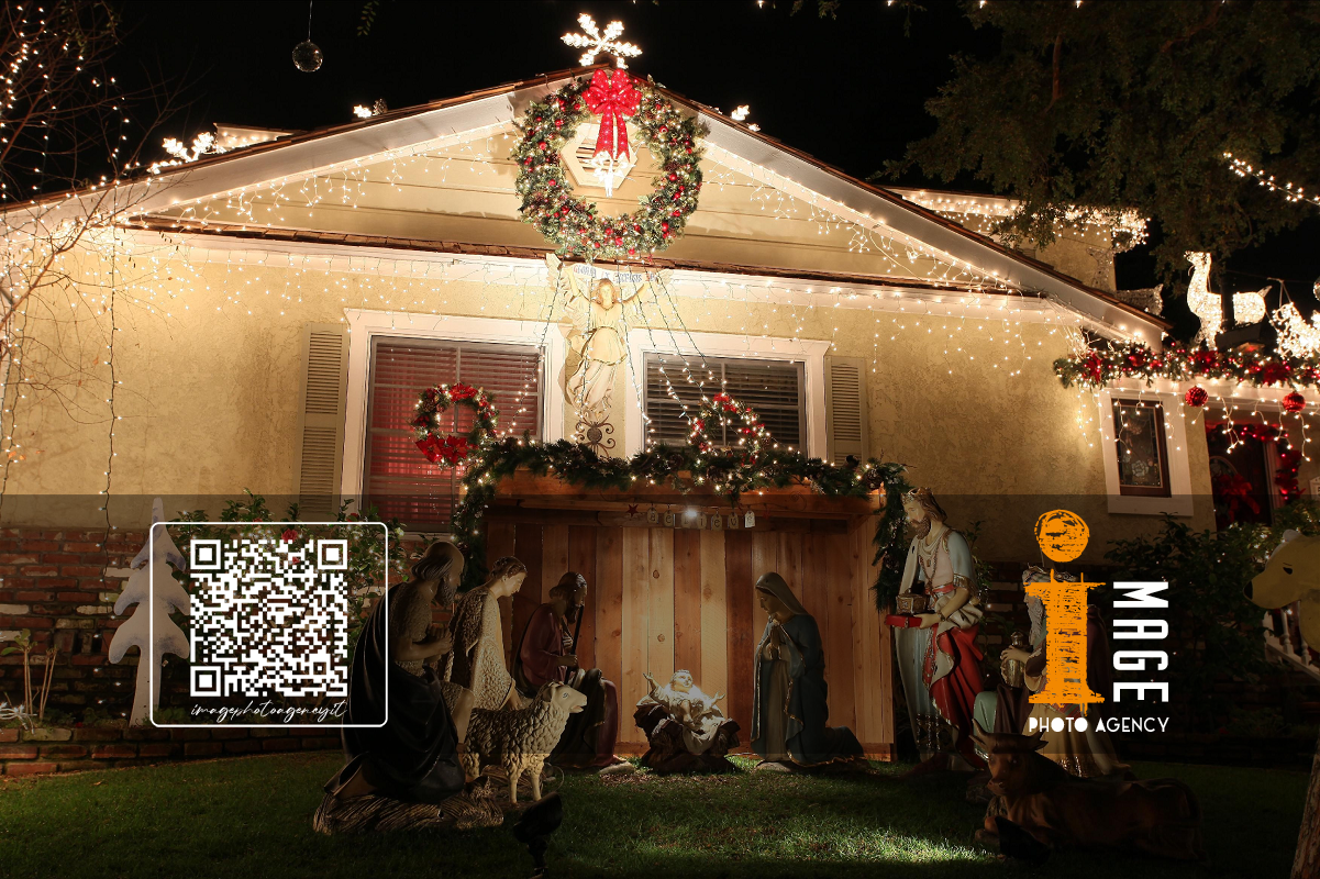 giardino di una casa Americana illuminata per il Santo Natale con il presepe ONLY ITALY