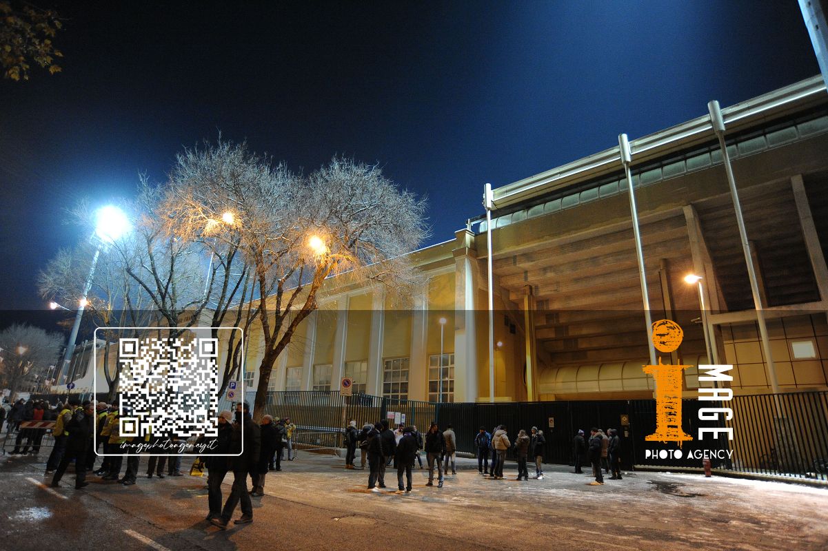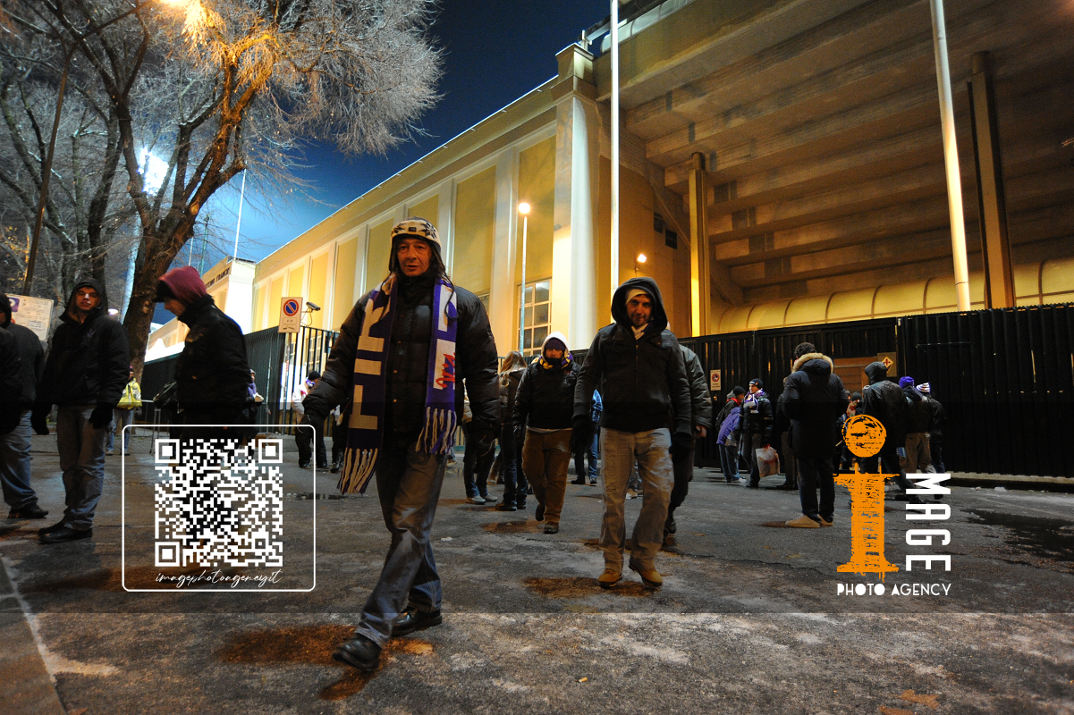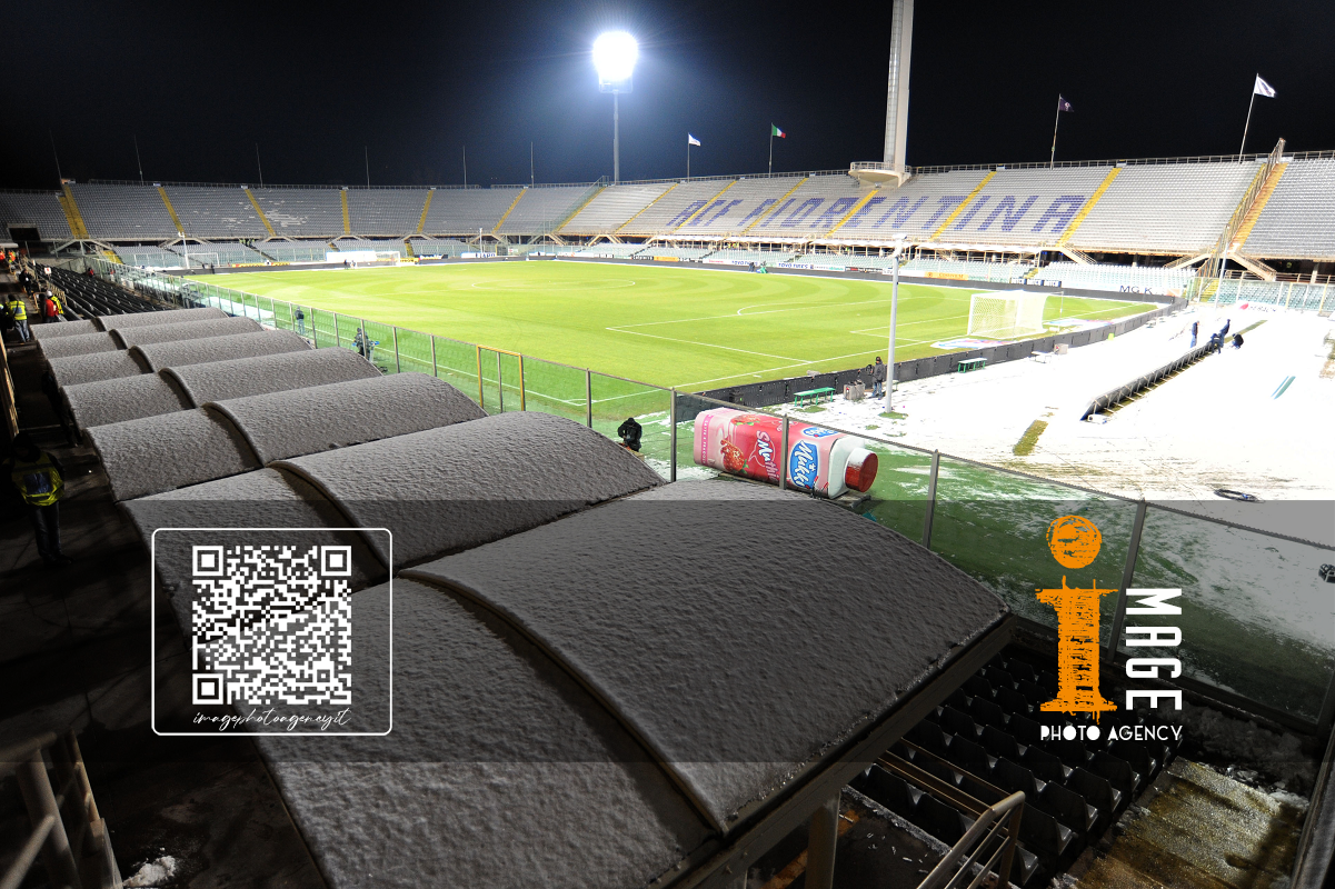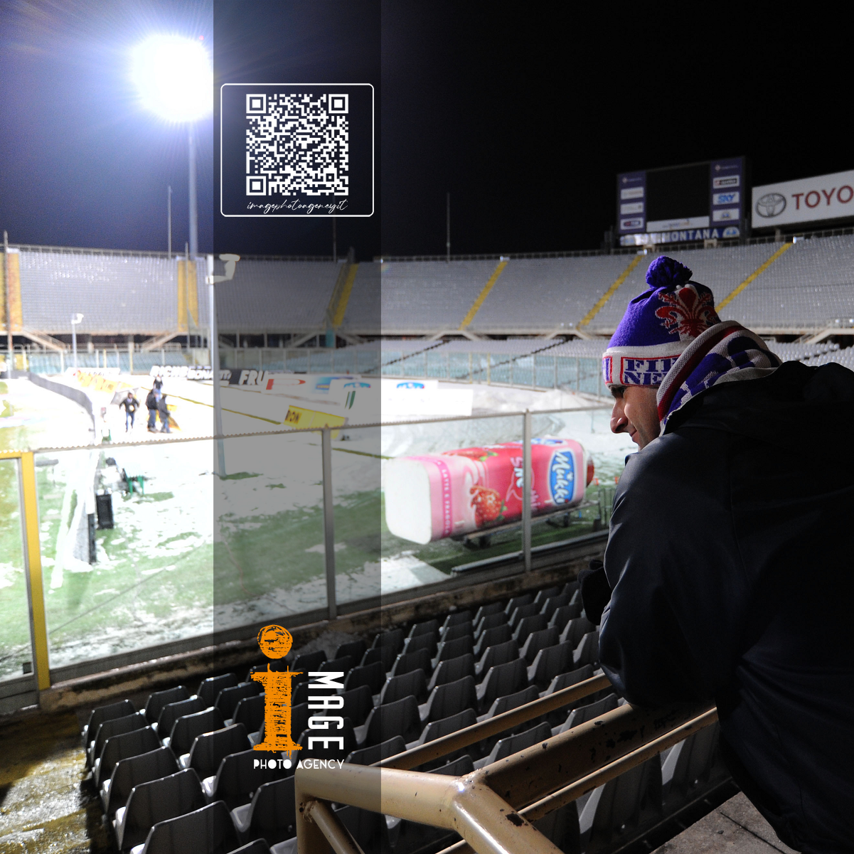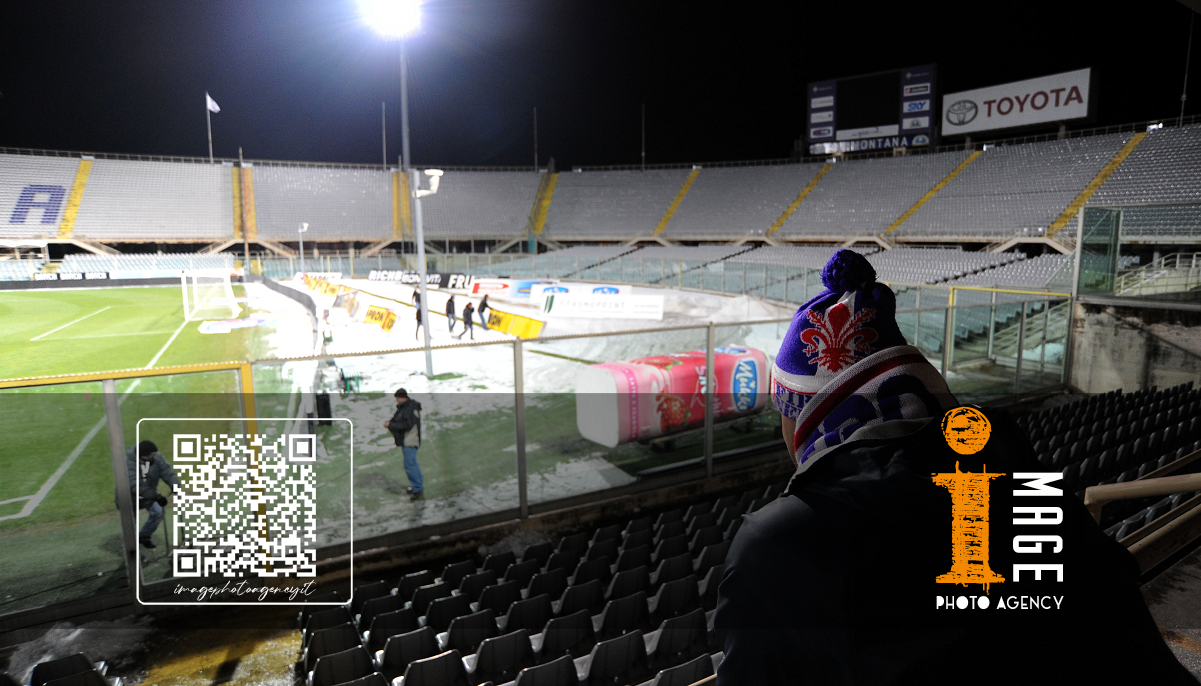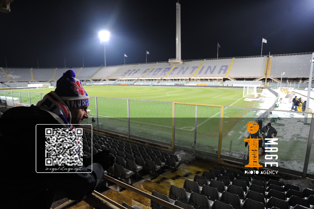 tifoso Fiorentina dentro lo stadio Artemio Franchi prima della gara poi rinviata per neve